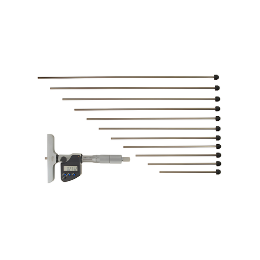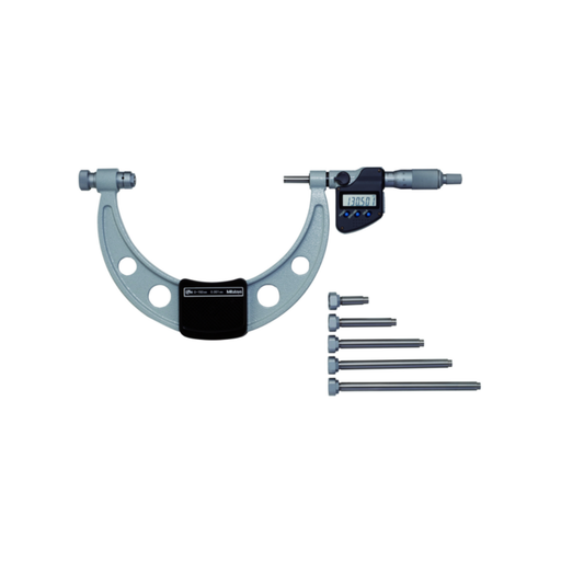 Micrómetro digital Mitutoyo provisto de topes fácilmente intercambiables para permitir un amplio intervalo de medición desde un solo instrumento. U...