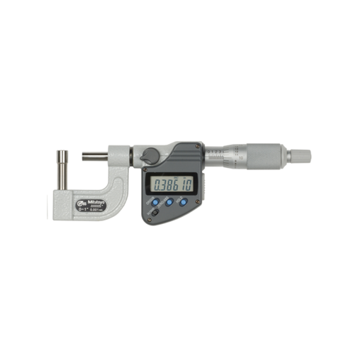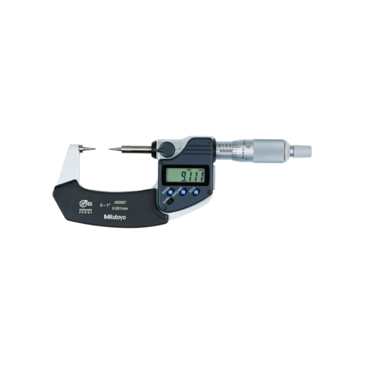 Este micrómetro de punta Digimatic cuenta con un tope y un husillo puntiagudos y ofrece los siguientes beneficios: Su tope puntiagudo y su eje tien...