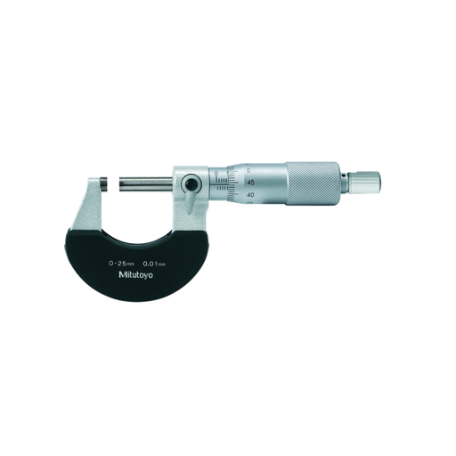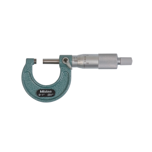 Un micrómetro no digital, básico y rentable de Mitutoyo con Trinquete para garantizar una medición repetible.