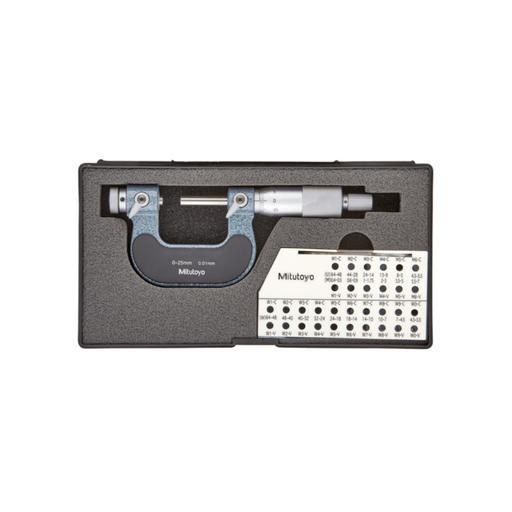 Un micrómetro no digital de Mitutoyo diseñado para montar yunques/puntas de husillo fácilmente intercambiables para medir una amplia gama de roscas...