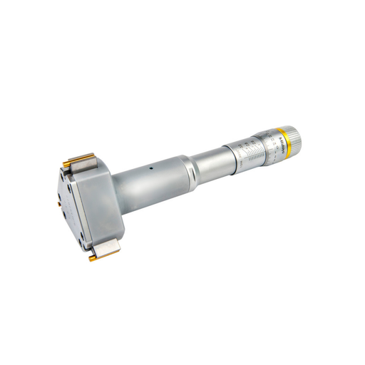 Un medidor de agujeros Mitutoyo no digital. Caras de contacto de acero endurecido. Un trinquete garantiza una medición repetible.