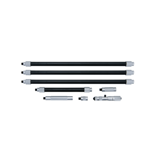 Un micrómetro de interiores Mitutoyo que cubre un rango de medición mediante el uso de un conjunto de tubos de extensión intercambiables que se pue...