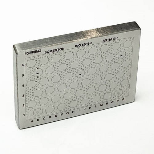 Bloques de referencia de dureza Brinell Foundrax certificados por UKAS.Certificados en ISO 6506 y ASTM E10.Incertidumbre de medición acreditada.Líd...