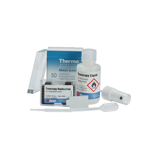 Kit de transcopia, 50 uds. Láminas de réplica de 20 x 30 mm, líquido de 40 ml, boquilla rociadora, pipeta y portaobjetos de microscopio