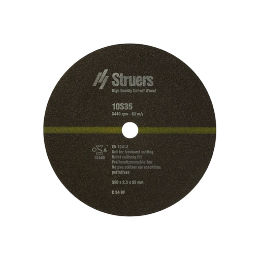 Para el corte de metales ferrosos de dureza media (< HV 500). Para Secotom. Óxido de aluminio. Ligante de resina.